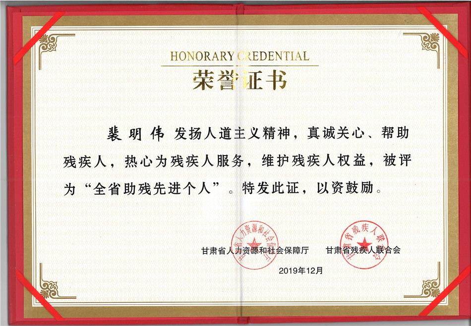 全省助殘先進個(gè)人(rén)