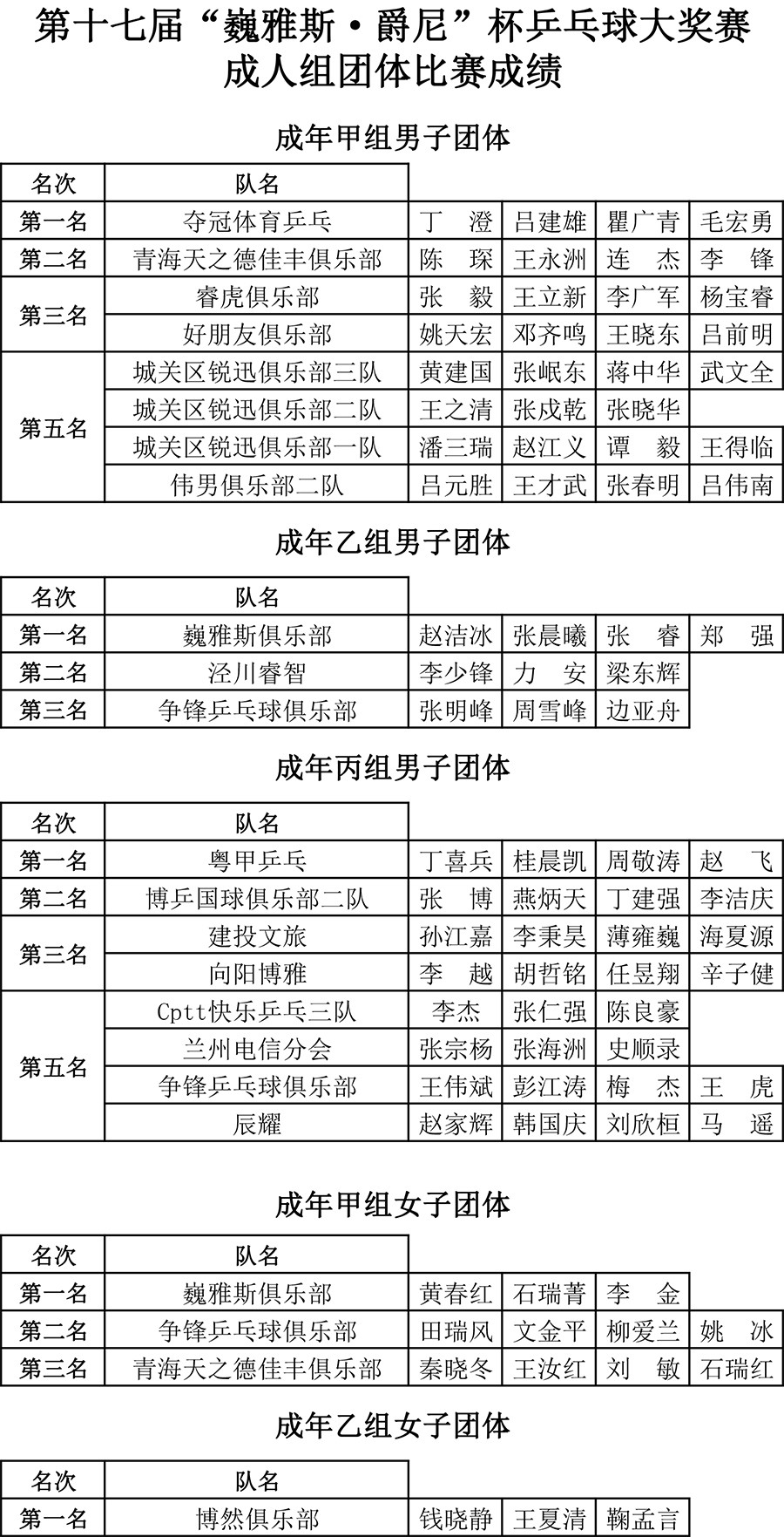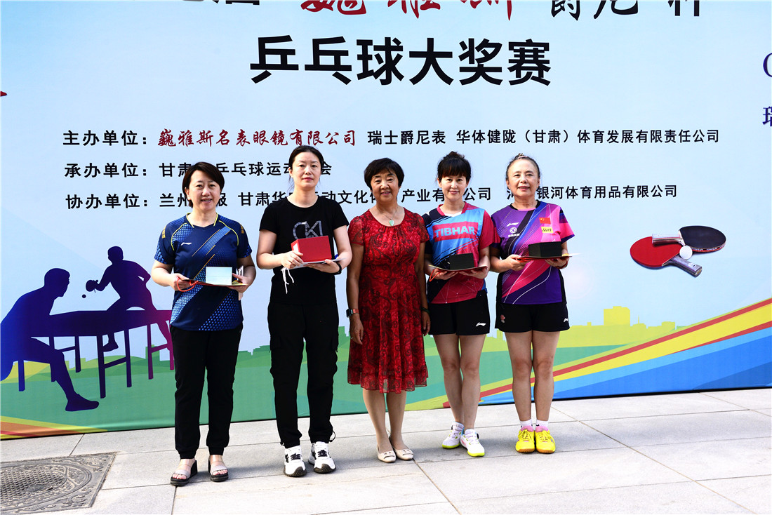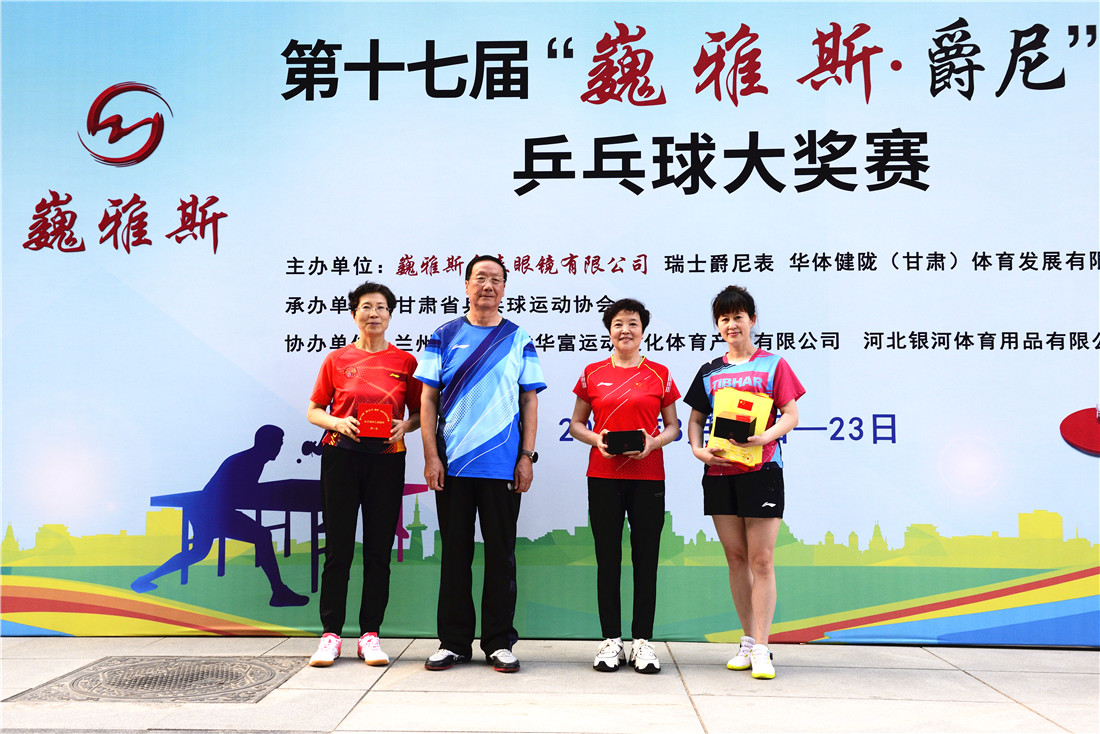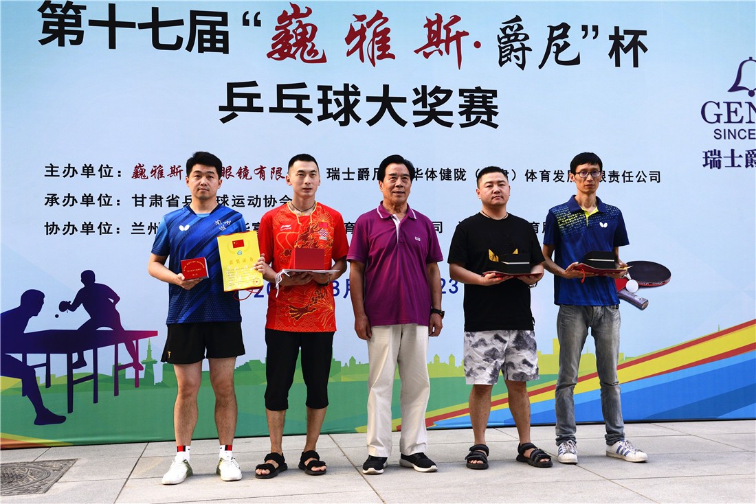第十七屆 “ 巍雅斯 · 爵尼杯”乒乓球大(dà)獎賽比賽,經過兩天緊張激烈的角逐,8月20日下午,成人(rén)組和(hé)嘉賓組名次花(huā)落其主。中國鍾表商會(huì)副會(huì)長、甘肅省眼鏡協會(huì)會(huì)長、甘肅省乒協副會(huì)長、遼甯寶聖鍾表眼鏡有限公司董事長裴正江,甘肅省乒乓球運動協會(huì)會(huì)長韓力,甘肅省乒乓球運動協會(huì)副會(huì)長張占學、姚天宏,甘肅省乒乓球運動協會(huì)顧問苗發,青海省乒協副主席高(gāo)麗(lì)嚴,遼甯寶聖鍾表眼鏡有限公司總裁裴明(míng)偉,遼甯寶聖鍾表眼鏡有限公司副總裁裴明(míng)宏出席頒獎儀式并為(wèi)獲獎代表隊和(hé)運動員頒獎。甘肅省乒協秘書(shū)長宋建農主持頒獎儀式。