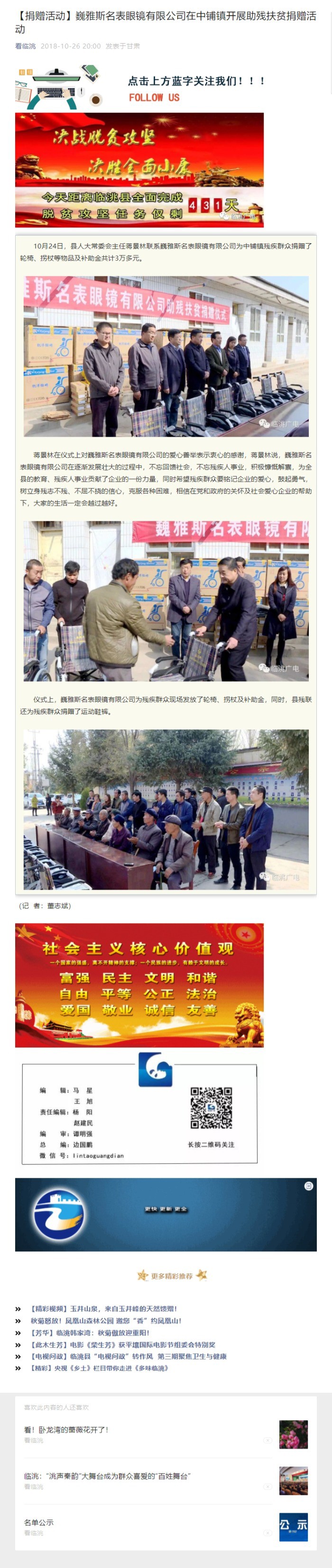 【捐贈活動】遼甯寶聖鍾表眼鏡有限公司在中鋪鎮開(kāi)展助殘扶貧捐贈活動