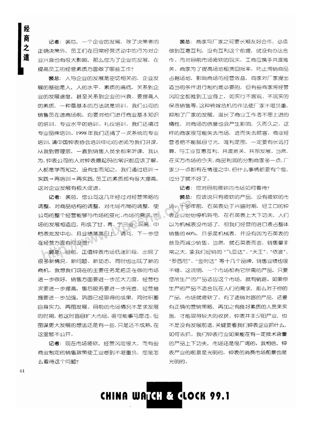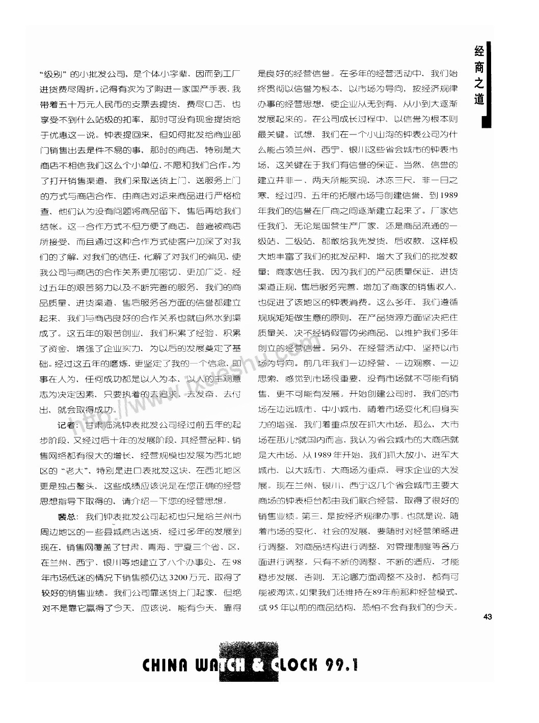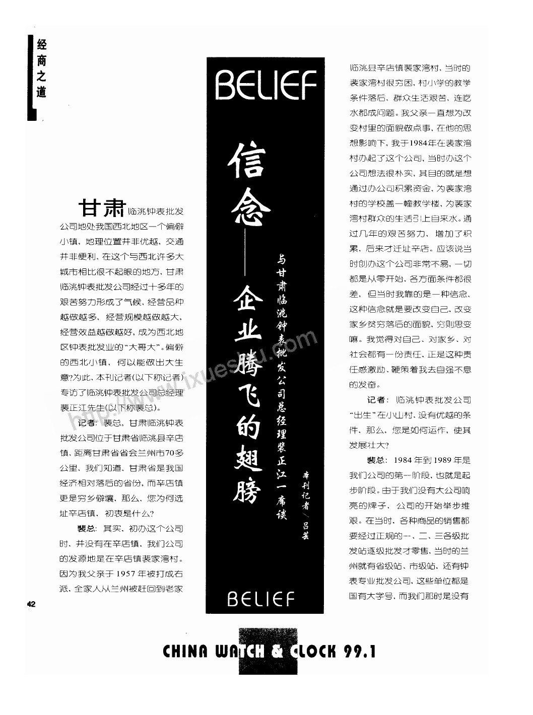 信念──企業騰飛的翅膀──與甘肅臨洮鍾表批發公司總經理(lǐ)裴正江一席談